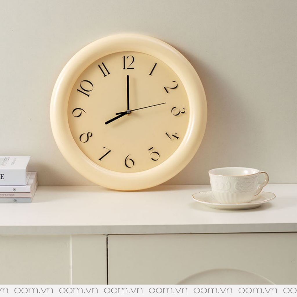 Một chiếc đồng hồ với những đường cong và con số thon thả sẽ giúp làm nhẹ nhàng không gian phòng của bạn hơn. Chirstiane sẽ có đường kính là 30cm cùng với màu kem nhẹ dễ dàng phối với nhiều phong cách nội thất khác nhau. Đồng hồ được tặng kèm sẵn pin.