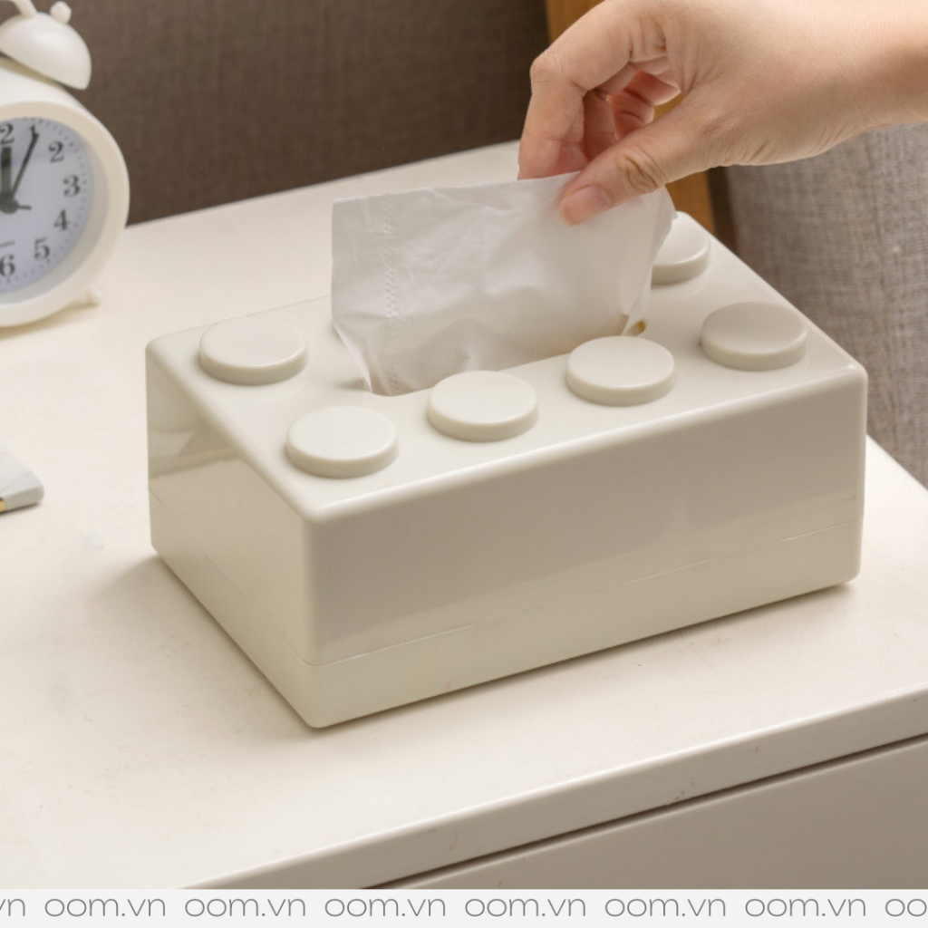 Như một miếng Lego khổng lồ, bạn vừa có thể decor vừa là hộp khăn giấy rút tiện dụng. Hộp Lero còn đi kèm miếng dán, giúp bạn có thể cố định hộp vào mọi mặt phẳng. Bên trong hộp sẽ có lò xo giúp nâng giấy lên vô cùng tiện lợi