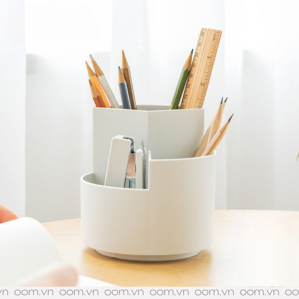 Giúp cho bàn làm việc của bạn thêm gọn gàng. Điểm đặt biệt của Spin là có thể xoay 360° và thiết kế 3 ngăn với 3 chiều cao khác nhau, bạn có thể đựng các vật dụng khác nhau. Bạn có thể dùng Spin để đựng bút viết, văn phòng phẩm hoặc một số mỹ phẩm trang điểm đều được.
